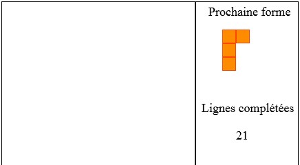 Modifier les fonctions "init" et "refreshCanvas" de manière à afficher le nombre de lignes complétées (variable "ctrLignes") en dessous de la prochaine forme.