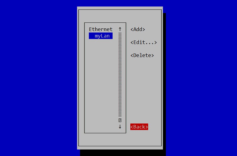 Avec les flèches haut et bas, se positionner sur le nom de l'interface à configurer. Utiliser ensuite la touche tabulation pour sélectionner "<Edit...>". Confirmer en appuyant sur "Entrée" :
