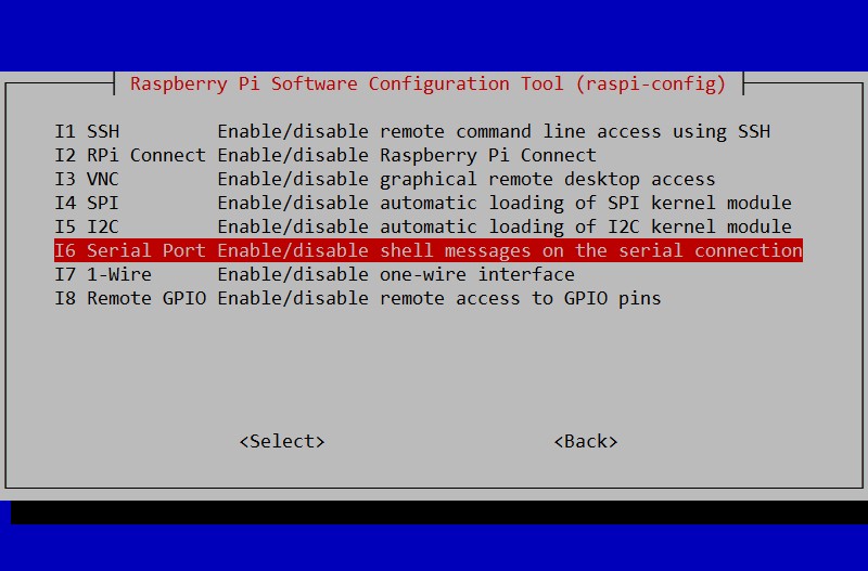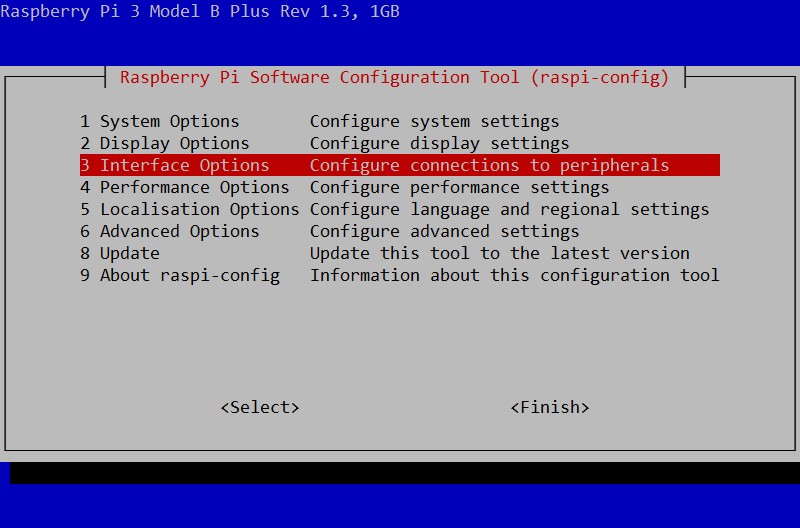 Avant de pouvoir utiliser le port série, quelques réglages sont nécessaires dans Raspbian. En effet, Raspbian utilise le port série GPIO comme port console sur lequel on peut se loguer avec un terminal (comme Putty par exemple). Il faut donc désactiver ceci pour libérer le port série. Pour cela, exécuter "raspi-config" :