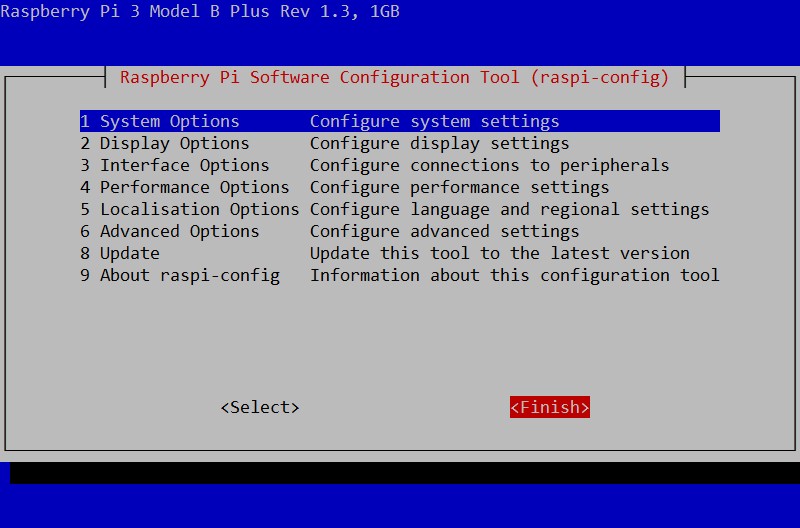 Raspi-config est une interface en mode texte. Pour se déplacer, utiliser les flèches ou la touche tabulation. Pour valider un choix, utiliser la barre d'espace ou la touche Entrée.