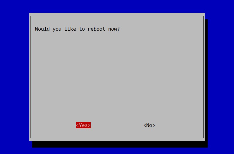 Sélectionner "Yes" pour redémarrer le Raspberry Pi et prendre en compte les modifications :